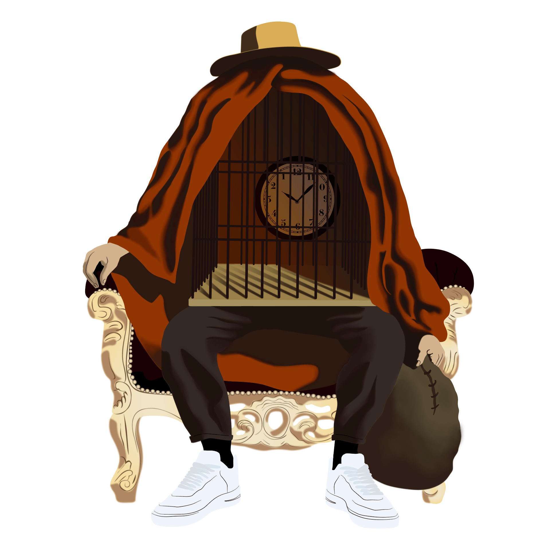 . Work in progress & Sketch . Original reference: "Il terapeuta" di René Magritte.